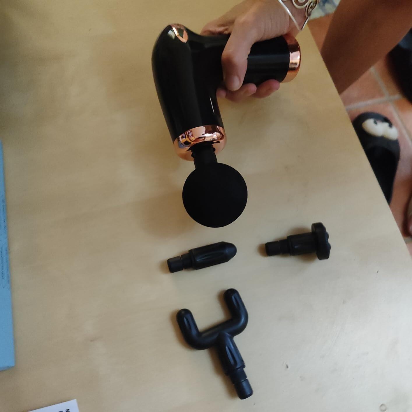 Round head for large muscle groups, bullet for trigger points, flat for dense areas, and fork for neck and spine. Swap heads to match pain location.